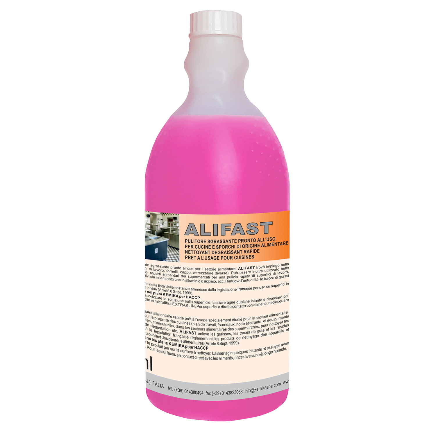 ALIFAST is a ready to use detergent degreaser formulated for kitchens (cookers, hot plates, oven hoods, fixtures etc.). It can also be used in food stores, butchers shops, etc. for a fast cleaning of working tops, slicing equipments etc. ALIFAST removes grease and food residues.