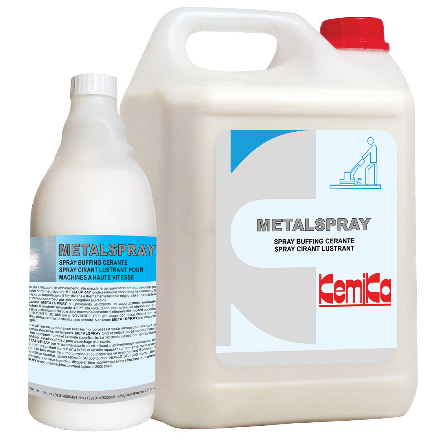 METALSPRAY is a composition of wax and polymers emulsions especially formulated for the maintenance of floor polishes films by spray buffing method with high speed machines.