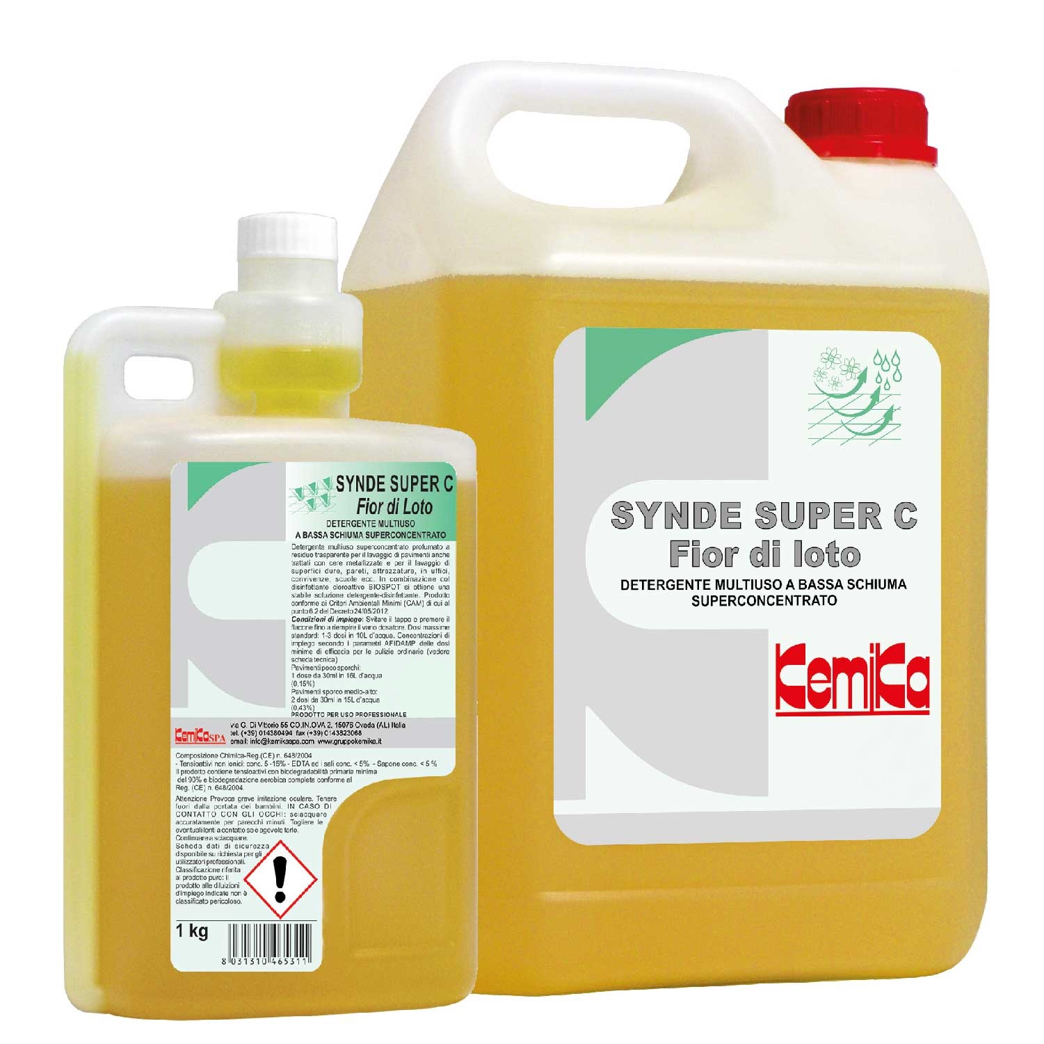 SYNDE SUPER C is a low foam all purpose superconcentrated detergent, suitable also for bright floors. It does not leave apparent residues.