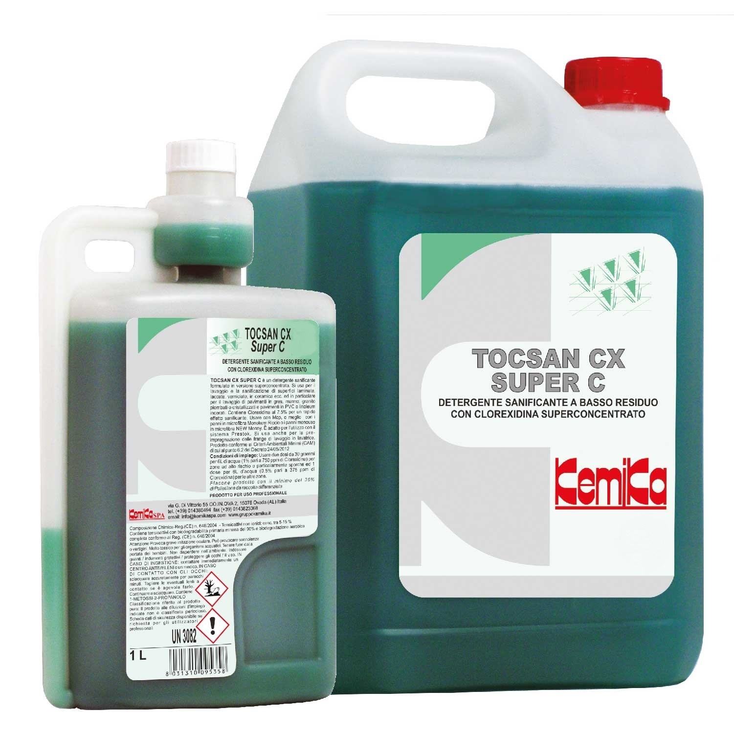 TOCSAN CX SUPER C is a disinfectant detergent with 7.5% of Chlorhexidine to be used with dosing-dilution system. It is used for washing and disinfecting floors and surfaces in hospitals, laboratories clinics, schools, etc.