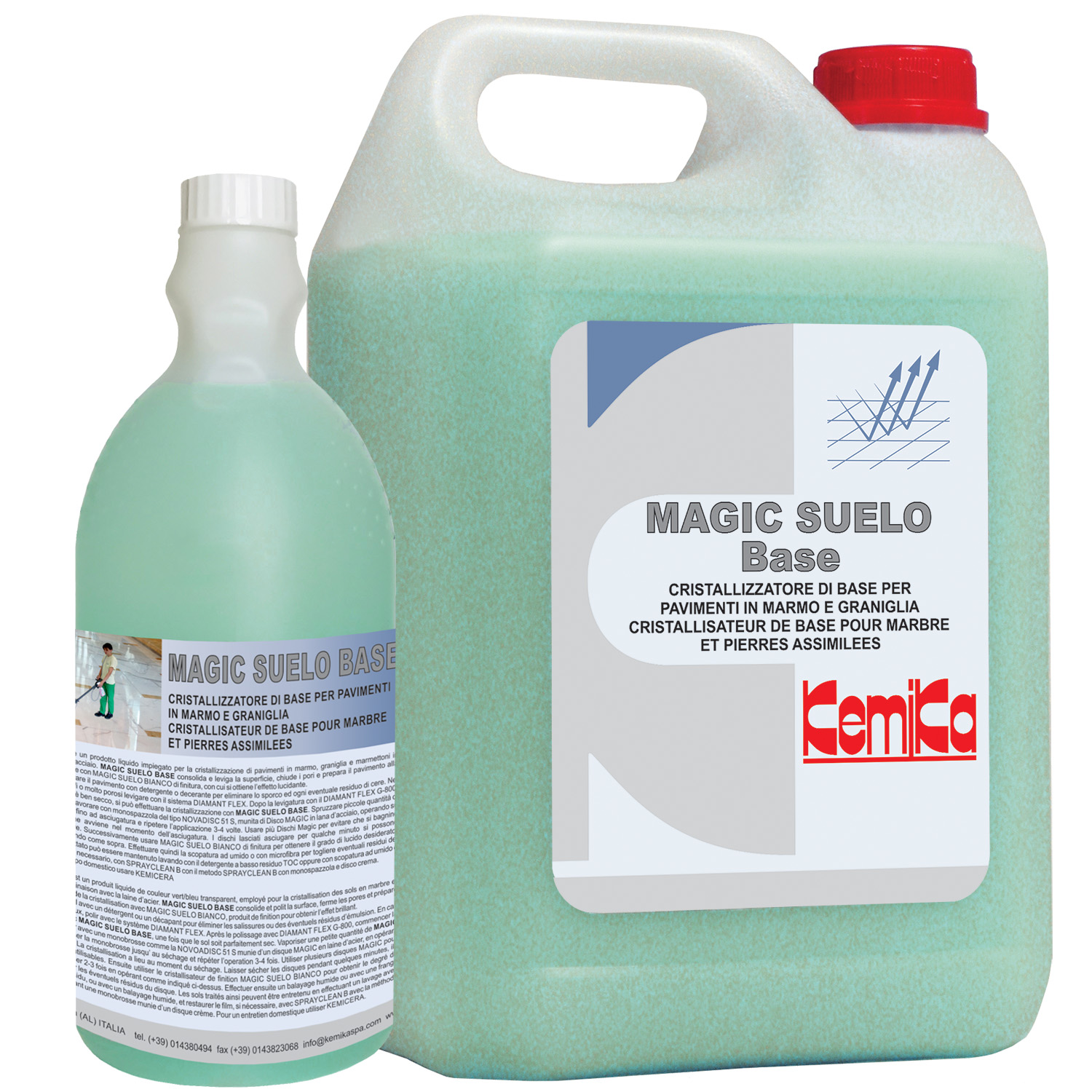 Cristallisateur à base de fluorosilicates pour le premier traitement à effet de bouche pores et consolidant des sols en marbre et pierres assimilées. Prepara il pavimento per la successiva finitura brillante con MAGIC SUELO BIANCO. Avec ce système on obtient l’effet brillant dans un temps de travail très court en utilisant une monobrosse lourde comme la Novadisc 51S munie d’un disque de laine d’acier inox Magic. Pour la préparation du sol avec système DIAMANT FLEX et disques diamantés DID DID voir fiche LL6.