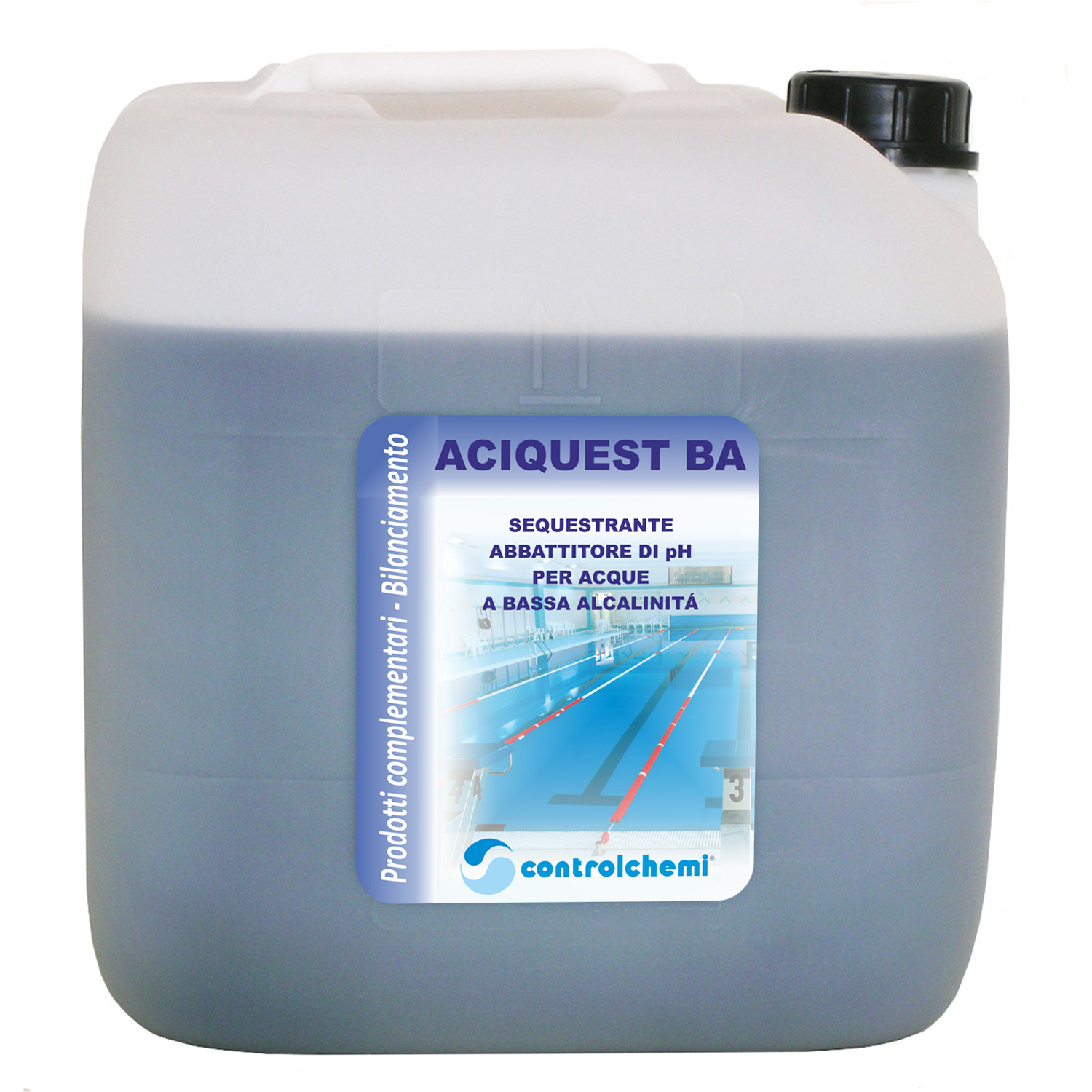 ACIQUEST BA è una miscela di acidi e sequestranti specifica per l’utilizzo con i sistemi di dosaggio DOSAKLOR, MIXER e IPOPAST dell’ipoclorito di calcio PURAKLOR HP, CALYPO GRANULARE e altri della gamma Controlchemi. Mantiene pulita la vaschetta di miscelazione dei DOSAKLOR e le linee di rientro in vasca. Permette di mantenere stabile il pH mediante un dosaggio con sonda pH o con il sistema di regolazione manuale.