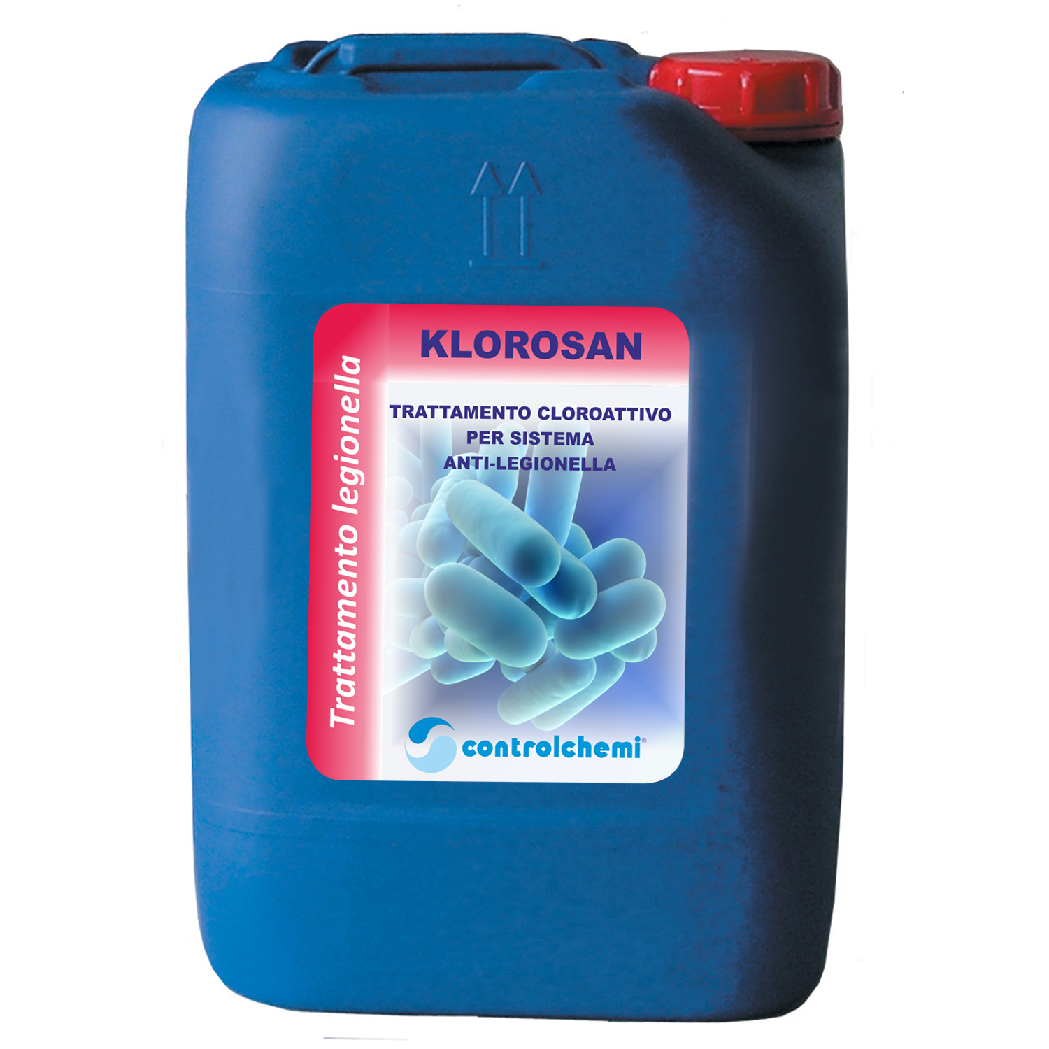 KLOROSAN è un prodotto specifico a base di ipoclorito di sodio stabilizzato ad alta purezza, per i trattamenti antilegionella nei circuiti d’acqua sanitaria. Può essere usato sia per i trattamenti di prevenzione della legionella, sia per i trattamenti shock.