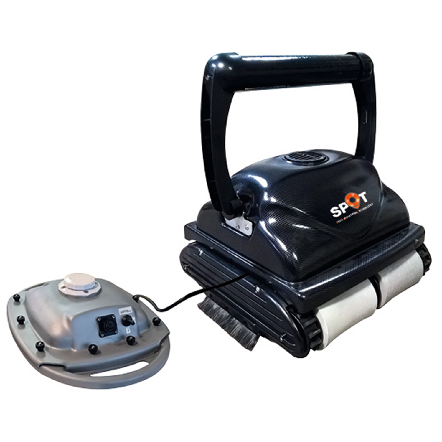 Robot pulitore professionale a batteria per la pulizia della vasca di piscina (fondo e pareti) di lunghezza massima di 20 m. Dotato di carrello di trasporto e radiocomando.