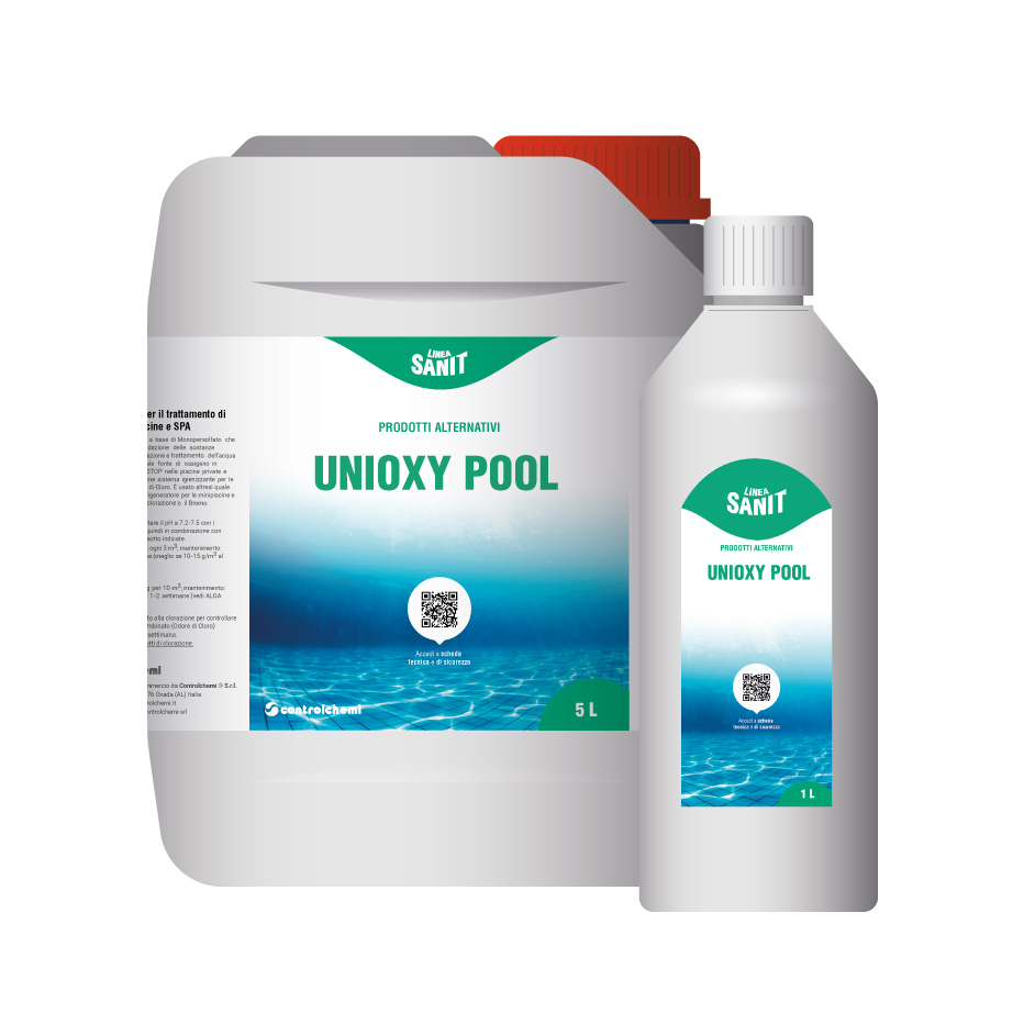 Soluzione di Perossido di Idrogeno e di speciali Poliquaternari per il trattamento senza cloro (Cloro-Free) delle piscine residenziali condominiali fino a 4 unità abitative.