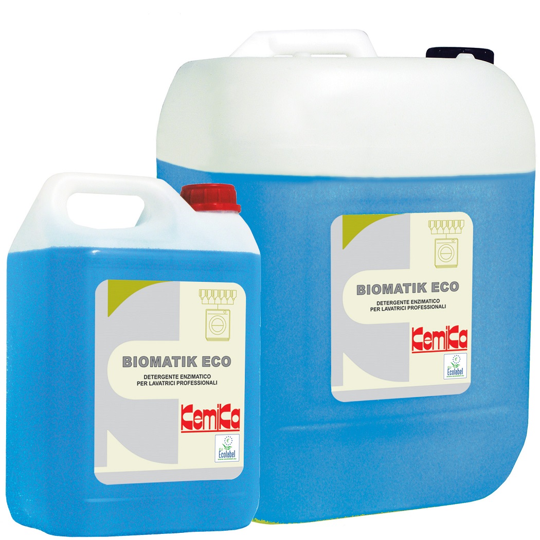 Detergente enzimatico per lavatrici professionali.