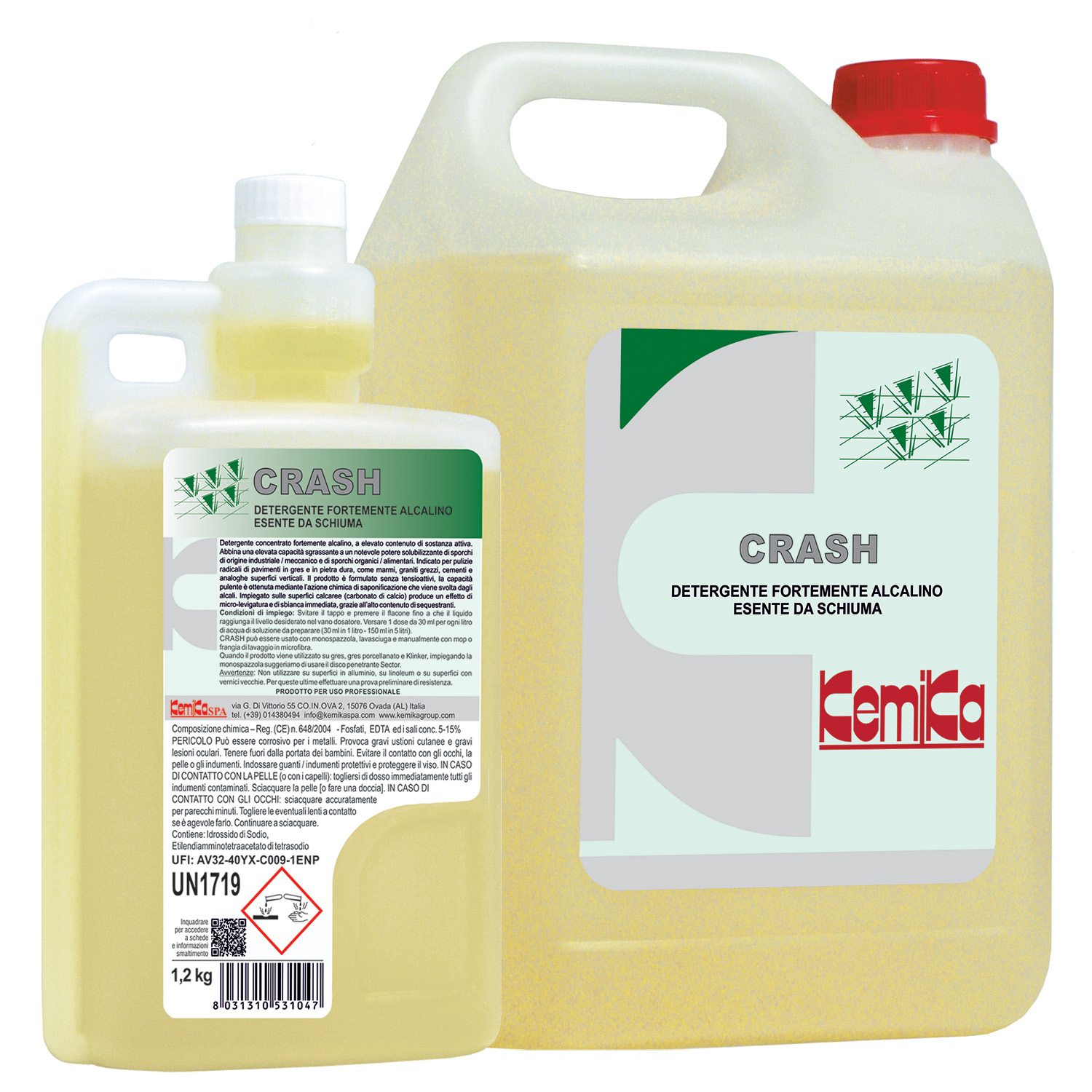 Detergente concentrato fortemente alcalino, a elevato contenuto di sostanza attiva.