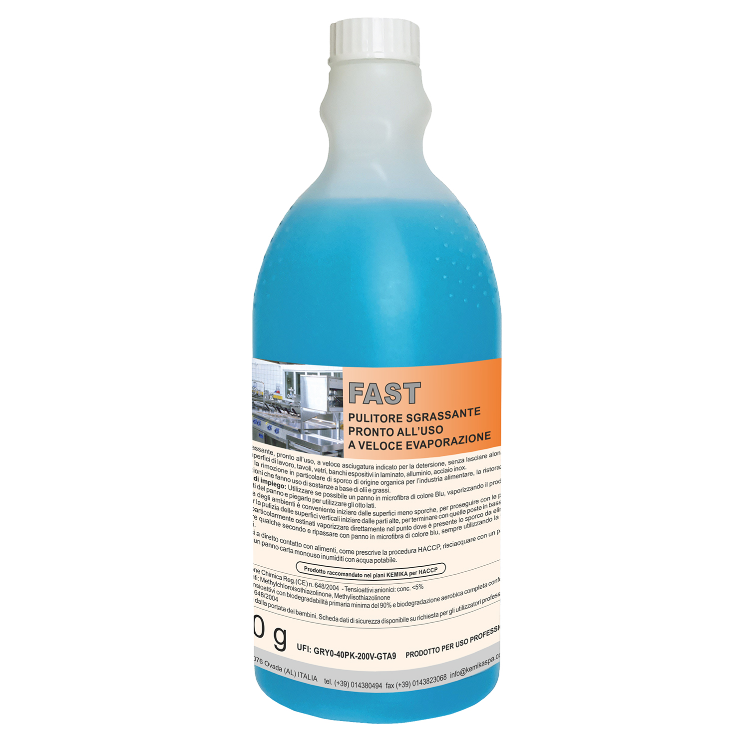 Pulitore sgrassante, pronto all’uso, a veloce asciugatura indicato per la detersione, senza lasciare alonature e residui, di superfici di lavoro, tavoli, vetri, banchi espositivi in laminato, alluminio, acciaio inox.