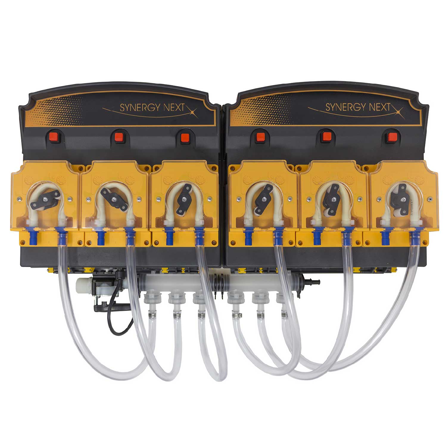 Pompe dosatrici per il dosaggio elettronico dei prodotti per macchine lavatrici industriali comandate da centralina. Il gruppo SYNERGY NEXT è disponibile con una portata di 300 ml/min o con una portata di 1200 ml/min.
