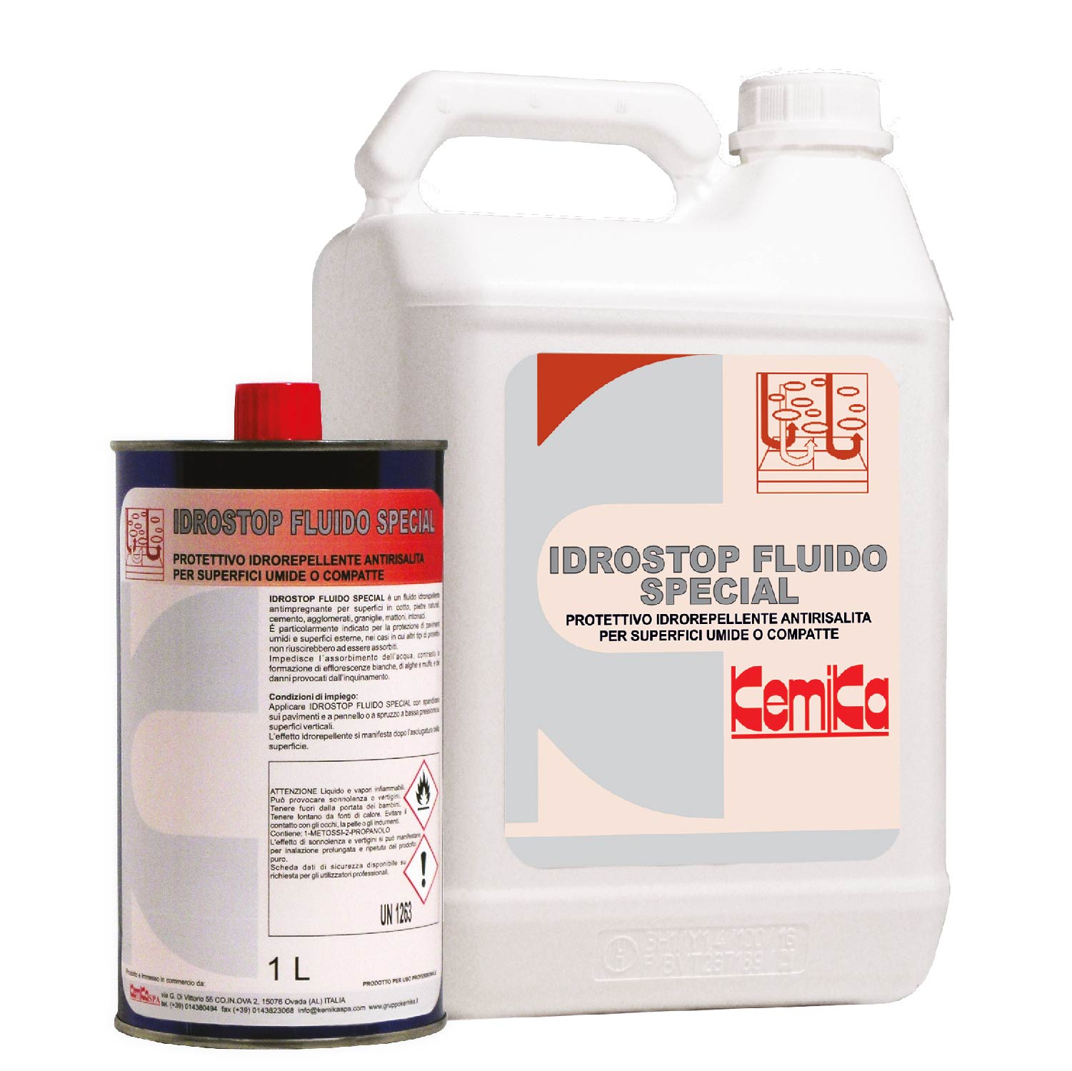 Protettivo idrorepellente per il trattamento di pavimenti ed altre superfici. Si usa su rivestimenti molto compatti come marmo, granito, serizzo o cotto a poro chiuso per bloccare il passaggio dell’umidità. Contiene solventi idrosolubili e può essere applicato anche su superfici leggermente umide.