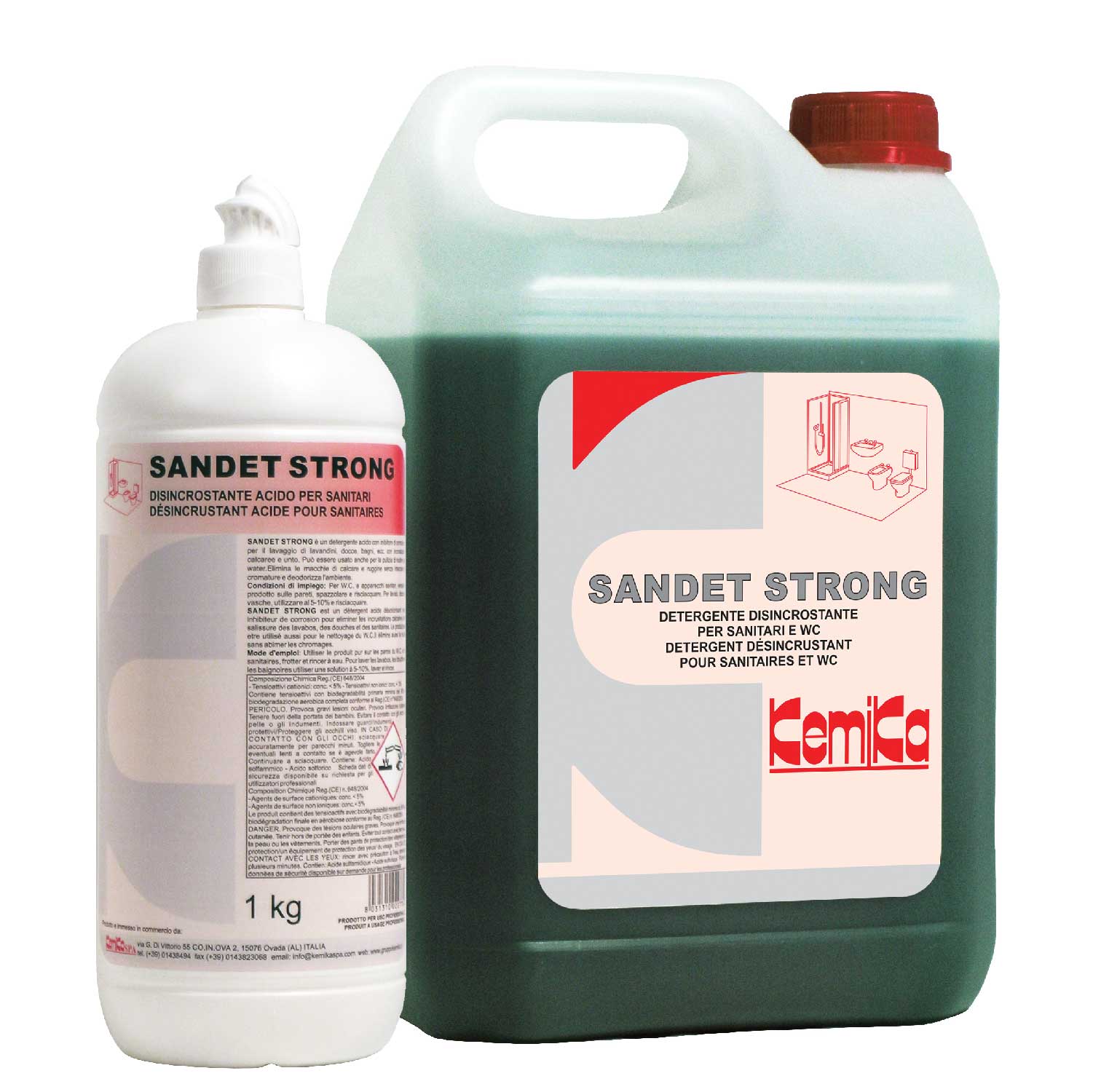 È una combinazione di detergenti, acidi tamponati, sali quaternari d’ammonio ed inibitori di corrosione. È un prodotto completo per le pulizie di attrezzature delle toilettes: bidet, wc, lavabo, doccia. Pulisce, disincrosta, igienizza, deodora e non corrode le cromature.