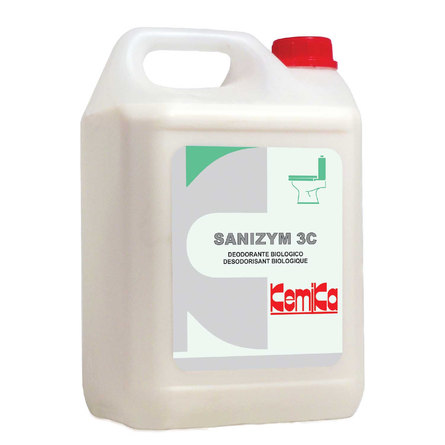 Deodorante Superconcentrato da usare con i sistemi di dosaggio per preparare il prodotto SANIZYM da usare al punto d’uso o per preparare la soluzione pronta all’uso. Deodorante biologico. Composizione di ceppi batterici selezionati in combinazione con agenti profumanti e tensioattivi. Adatto alla deodorazione prolungata di superfici e pavimenti di toilettes soggette a forte traffico. Si usa per la deodorazione ed il lavaggio di pavimenti di case di riposo. I ceppi batterici metabolizzano l’urea e le sostanze organiche mantenendosi vitali a lungo.