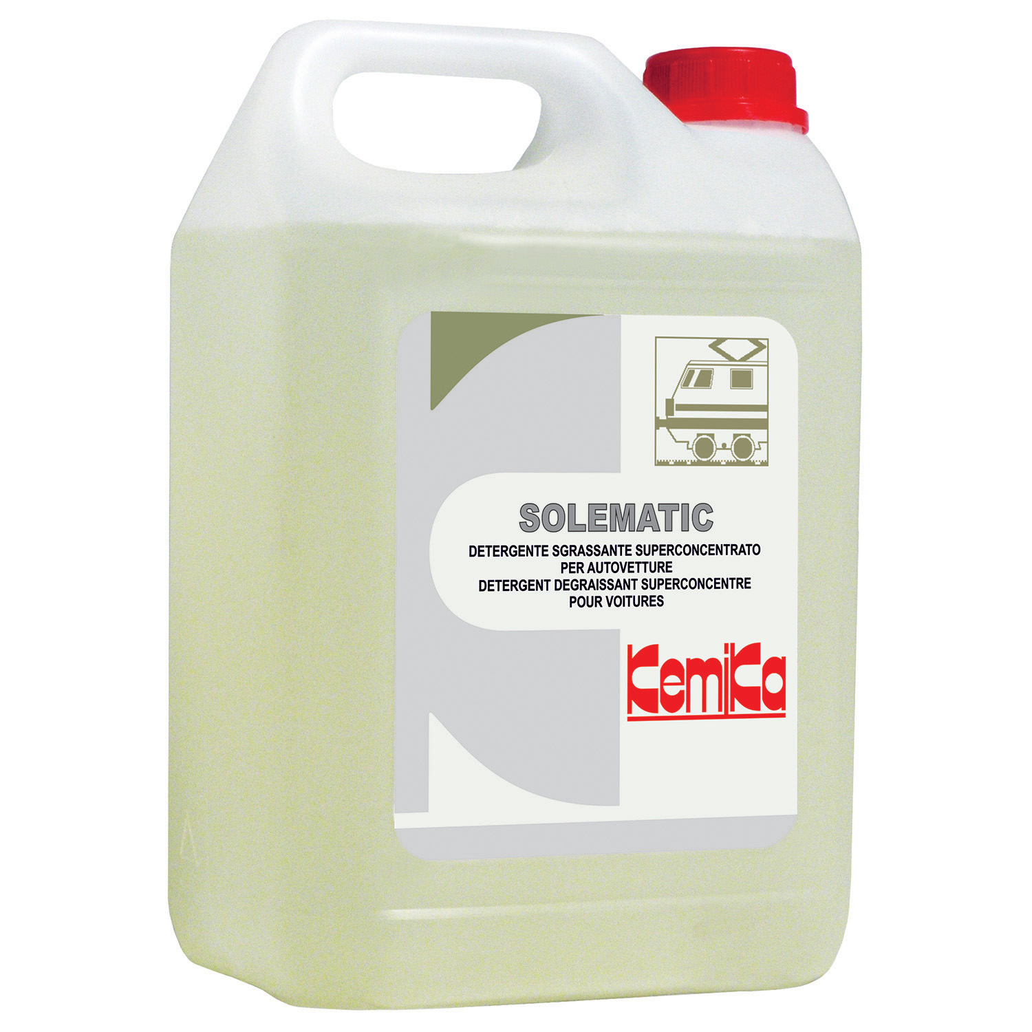 Detergente fortemente alcalino superconcentrato ad alta schiuma per il lavaggio di carrozze ferroviarie ed esterni di bus con sistema a schiumatura. Adatto anche per il lavaggio a schiumatura dei sottocassa.